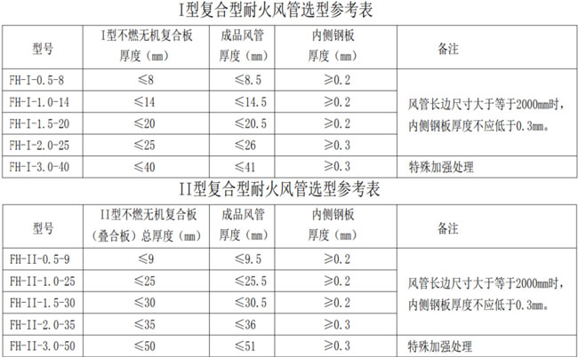 1、本表“不燃无机复合板厚度”以镁质高晶板、纤维增强硅酸钙板为参考(非标准限定值)。